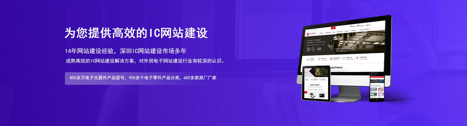 14年網站建設經驗,深圳IC網站建設市場多年,成熟高效的IC網站建設解決方案,對外貿電子網站建設行業有較深的認識。